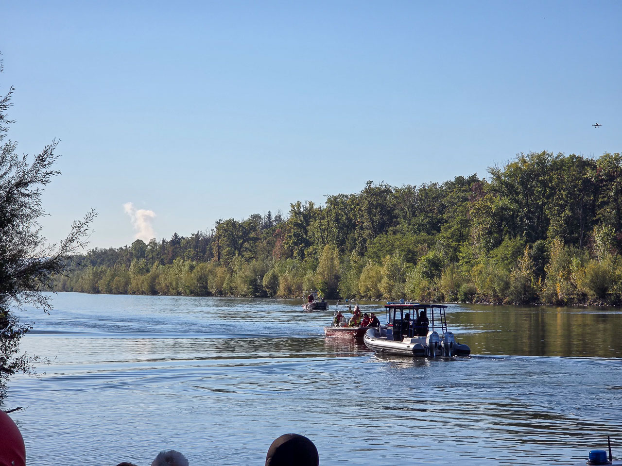 Mehrere Polizeistreifen, ein Polizeihubschrauber, eine Polizeidrohne, ein Polizeiboot sowie diverse Einsatzkräfte von Rettung, Feuerwehr mit Feuerwehr-Taucher und Wasserrettung standen im Einsatz.