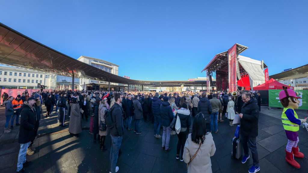 Am Nachmittag standen stündliche Sonderzüge bereit, mit denen die ersten Fahrgäste die Verbindung testen konnten. Sie pendelten zwischen Graz und Klagenfurt und erlebten beide Festareale. Gleichzeitig sorgten Acts wie folkshilfe, AVEC, Lemo und MÖWE für musikalische Highlights, die ohne Anmeldung besucht werden konnten und die Stimmung bis in die Abendstunden hochhielten.