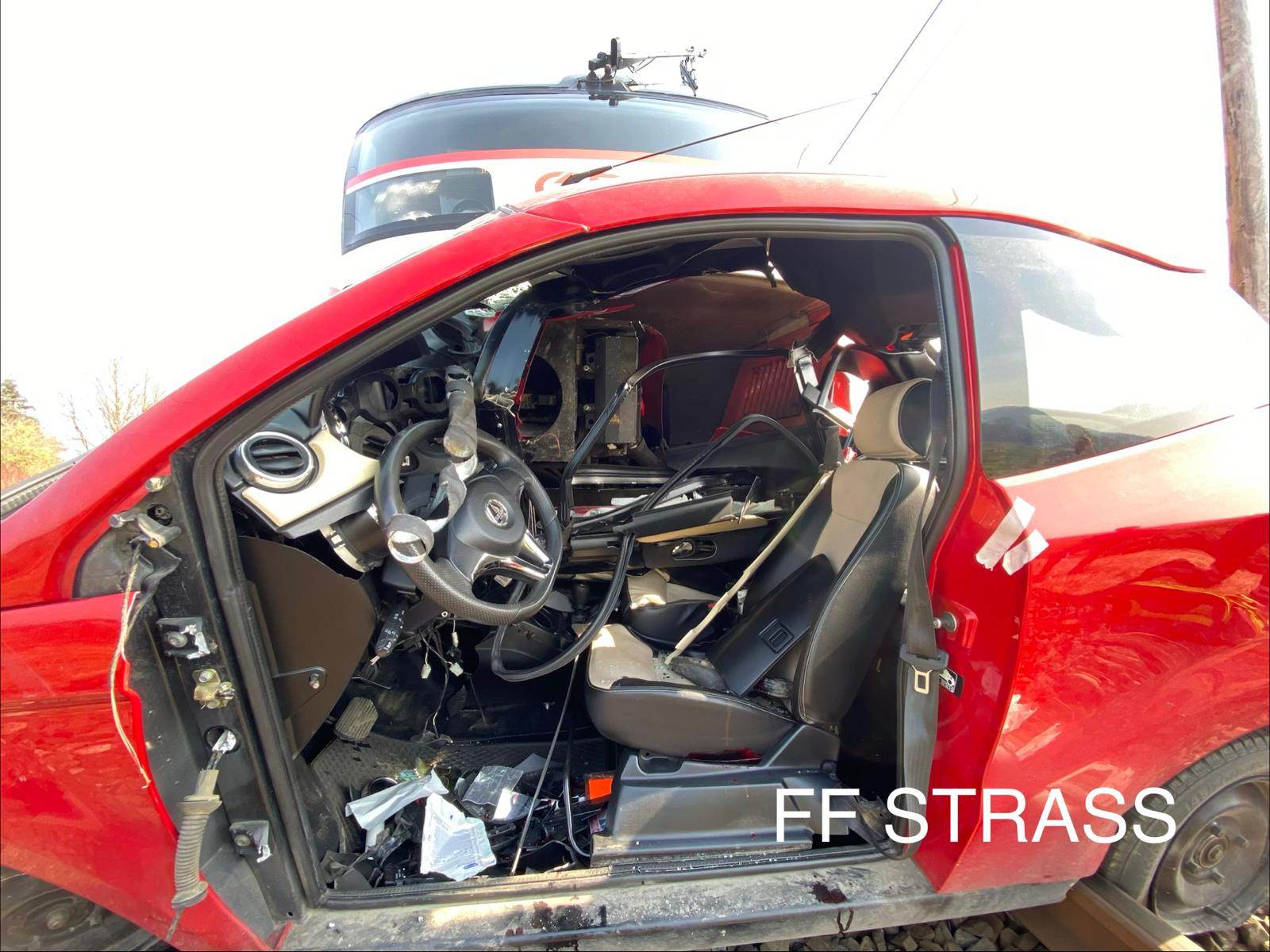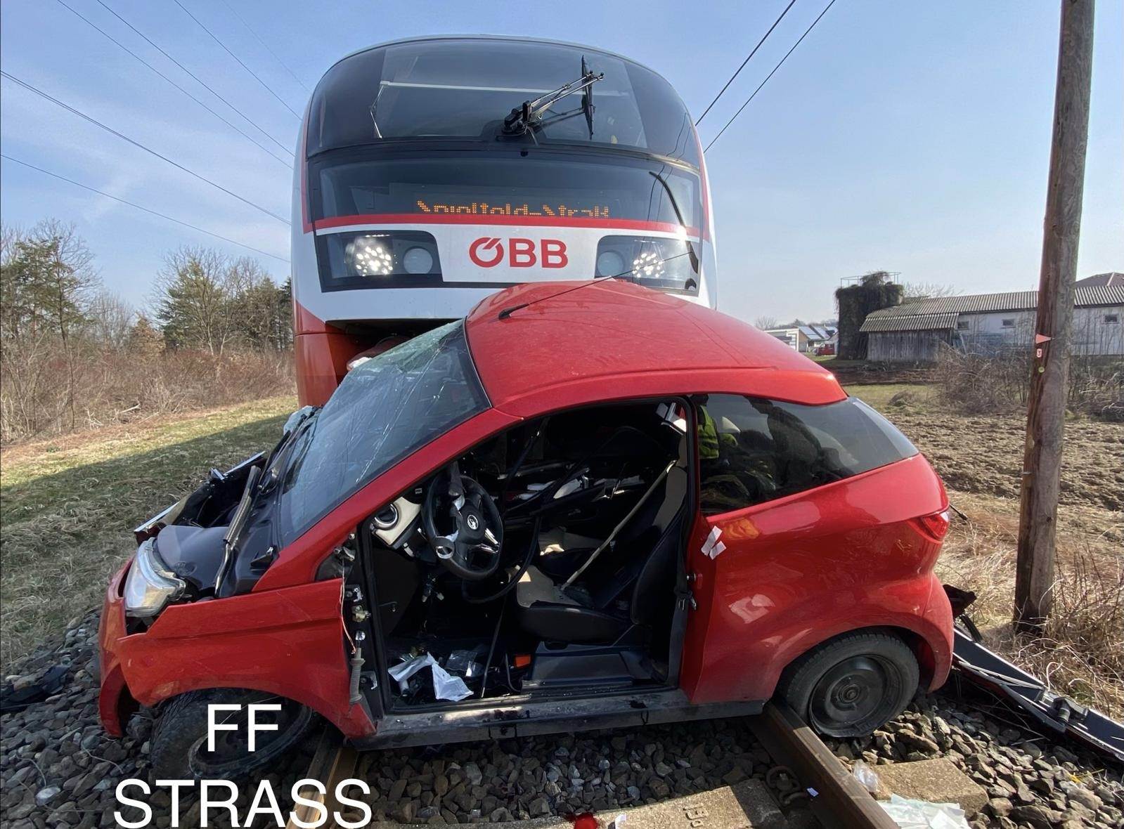 Der Lokführer gab laut Polizei vorschriftsmäßig zweimal das Signalhorn ab, um auf den herannahenden Zug aufmerksam zu machen. Trotz eingeleiteter Vollbremsung konnte er eine Kollision mit dem Pkw jedoch nicht mehr verhindern. Das Auto wurde vom Zug erfasst und mehrere Meter mitgeschleift.